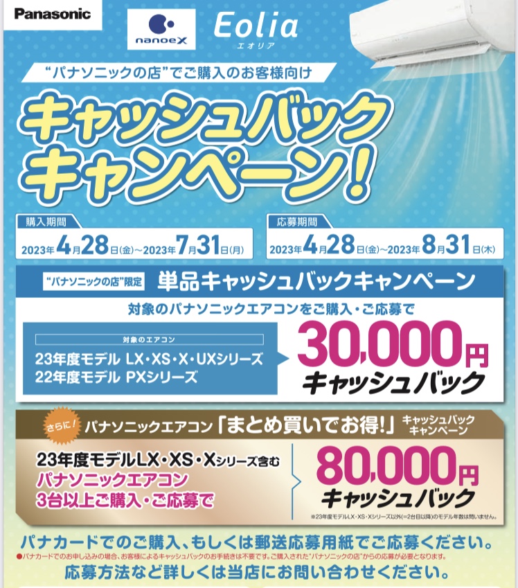 またエアコンキャッシュバックが始まりました!