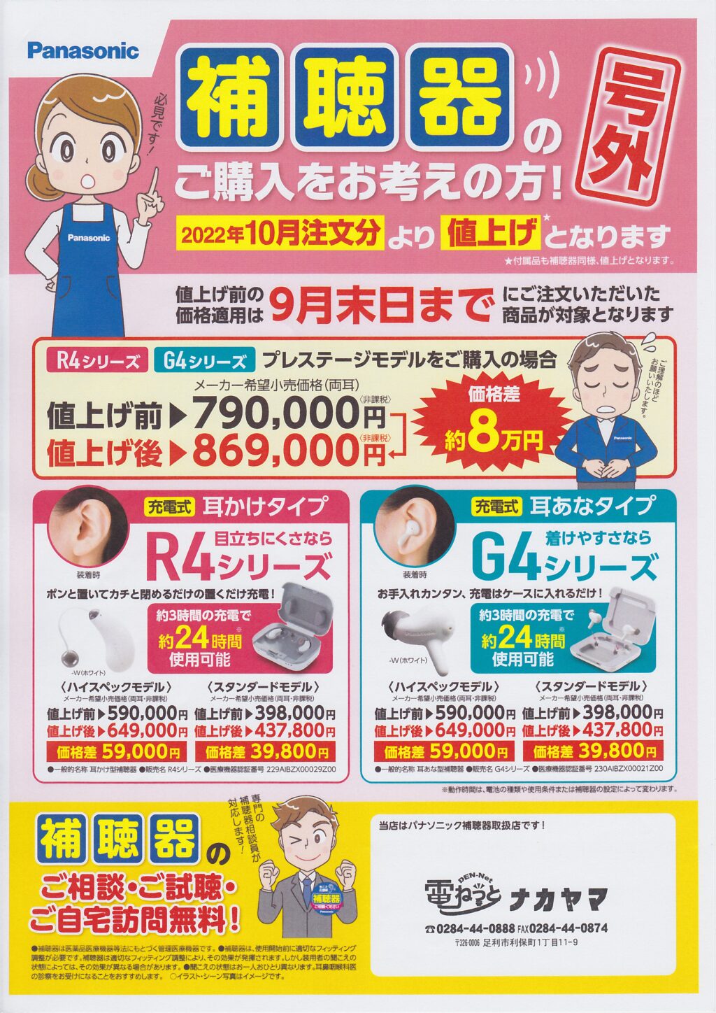 補聴器も値上げが予定されております。 どうかこの機会をお見逃しないように お願い致します。