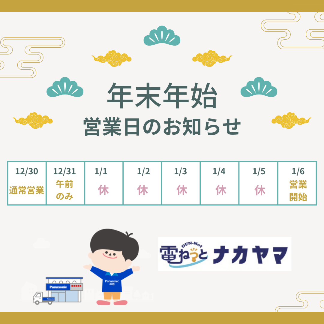 年末年始の営業日のご案内です。