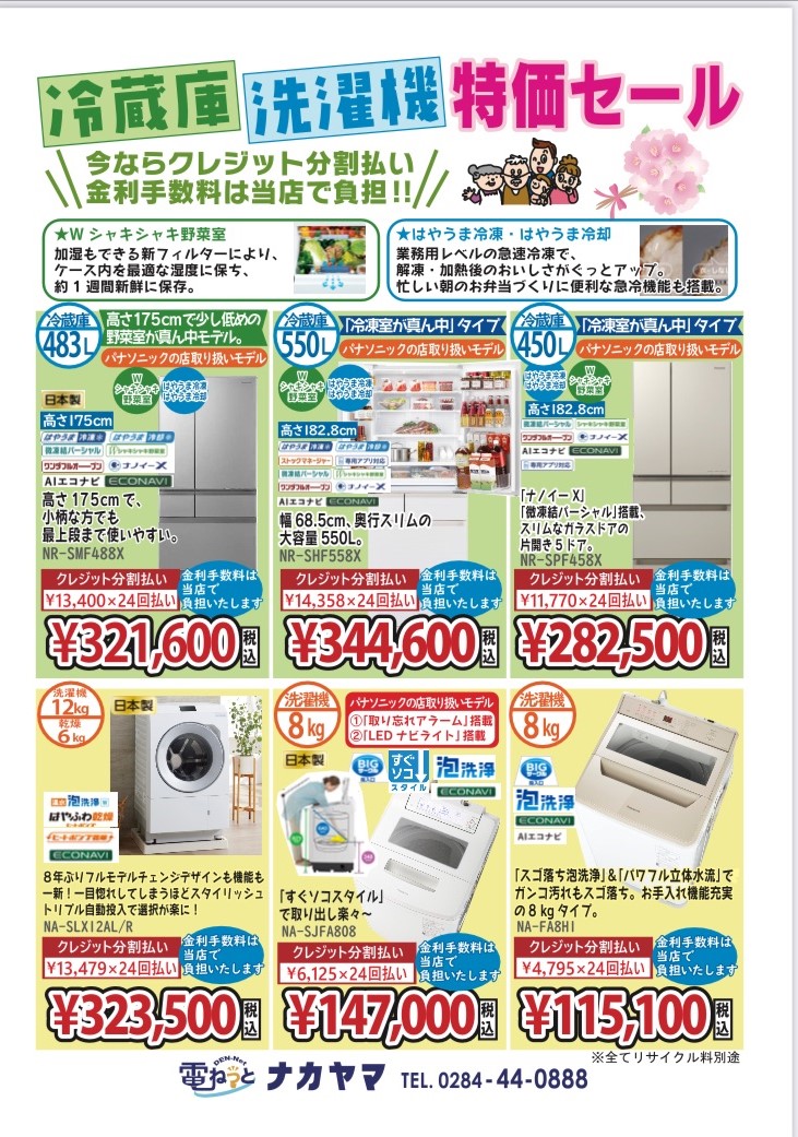 春のパナソニックフェア🌸 開催します! 3月1日(金)~3日(日) まだまだ寒い時期がづつきますが、 いかがお過ごしでしょうか。 電ねっとナカヤマの 春のパナソニックフェアを 開催いたします。 お買い得商品を揃えて お待ちしております。 ぜひお越しください!!