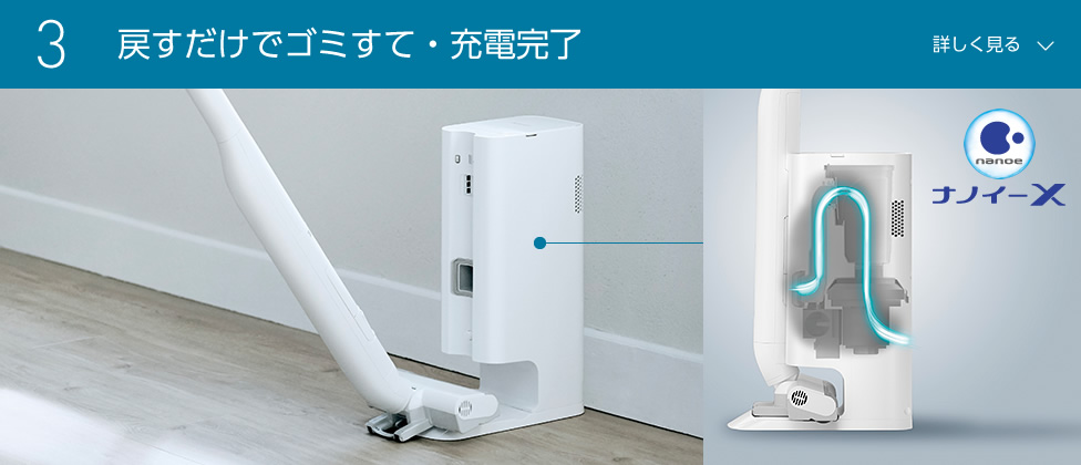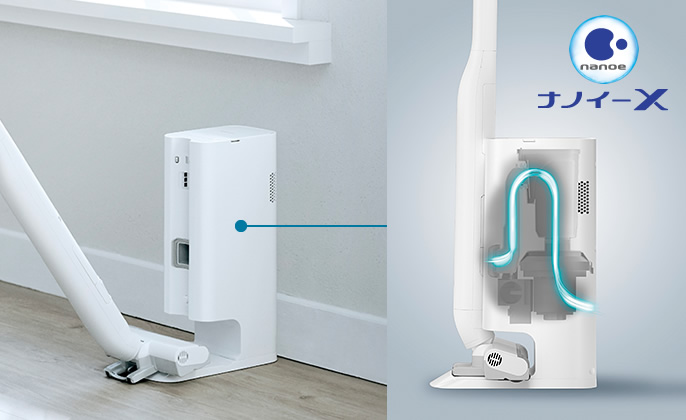 クリーンドックの紙パック内に溜まったゴミはナノイーXで除菌・脱臭。