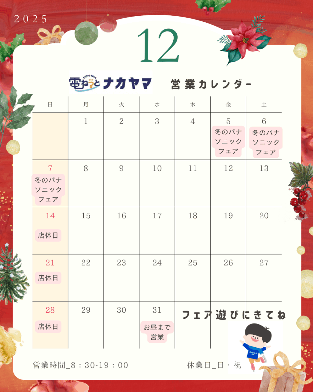 12月の営業カレンダー