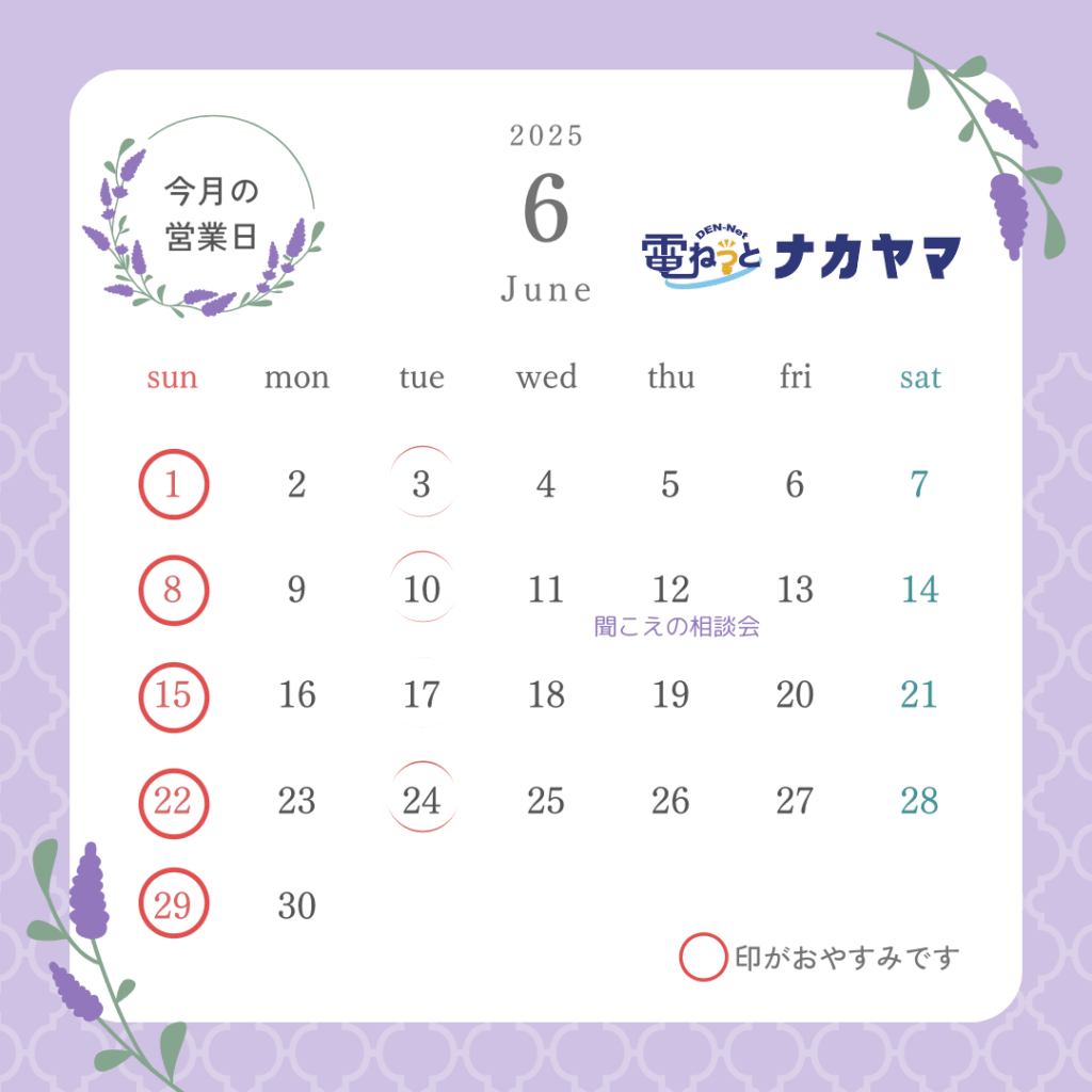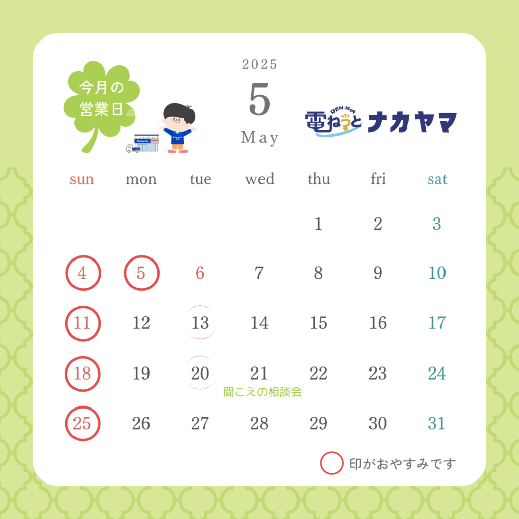5月と6月の営業カレンダーとなります。 今月もよろしくお願いいたします。
