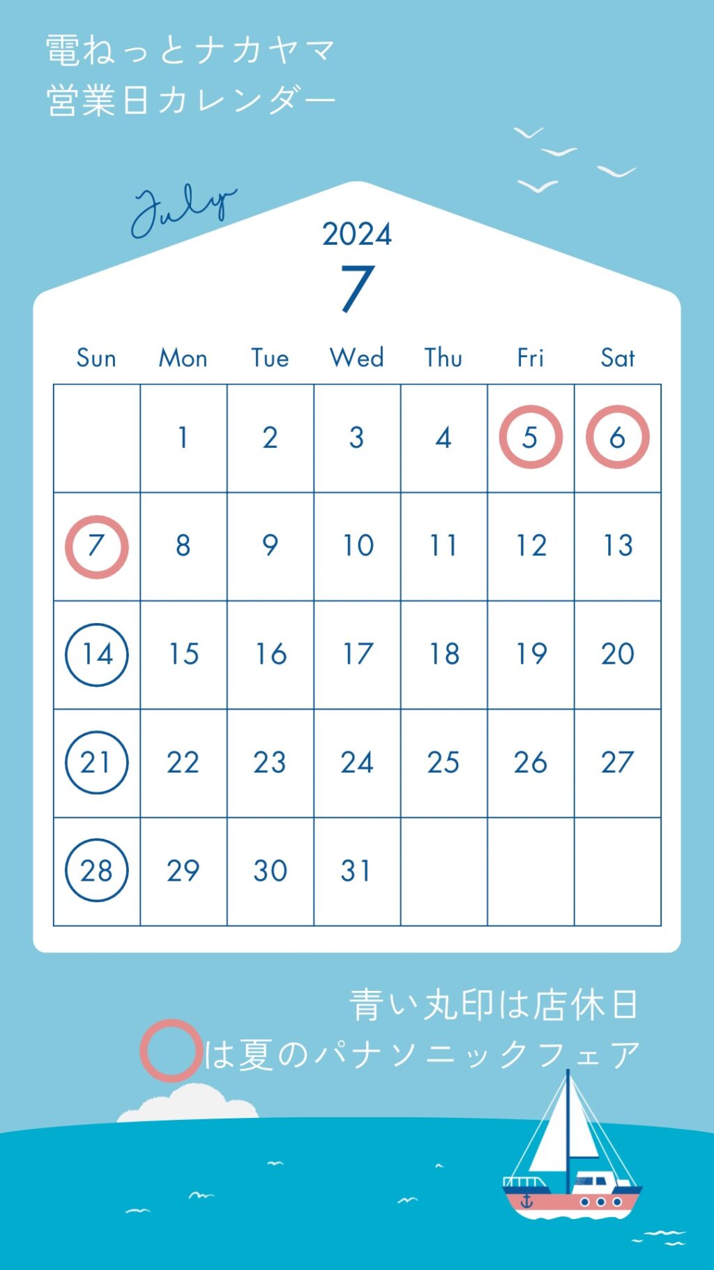 7月の営業日カレンダー