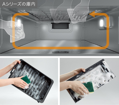 おすすめポイント 1 Wフラット庫内 グリルの中がフラットになっています! LED庫内灯がついていて とにかくお掃除が楽です😭 高さのある食材や鍋が直接入ります☆