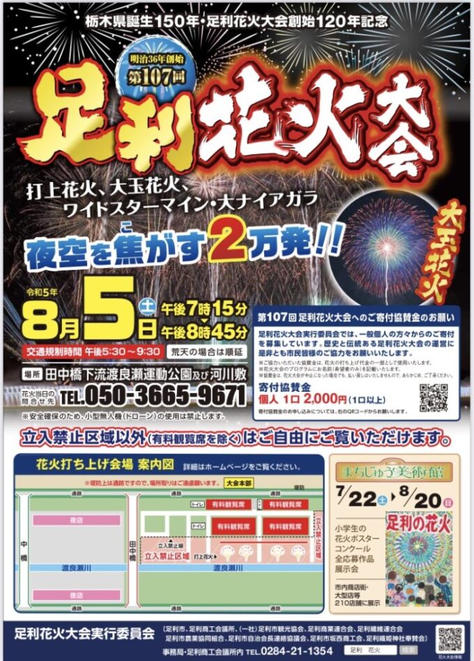 今年も足利花火大会が開催されます🍉 今年も電ねっとナカヤマは社長を 足利の音響設備工事のまとめ役として 足利花火大会へ参加します。