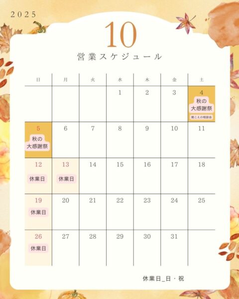 10月の営業カレンダー
