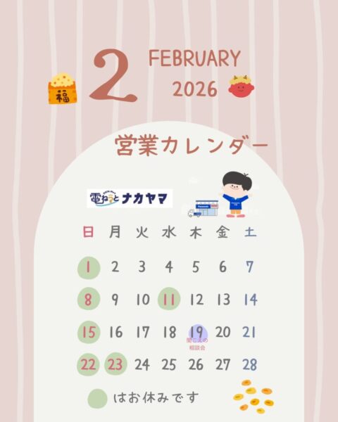 2月の営業カレンダー